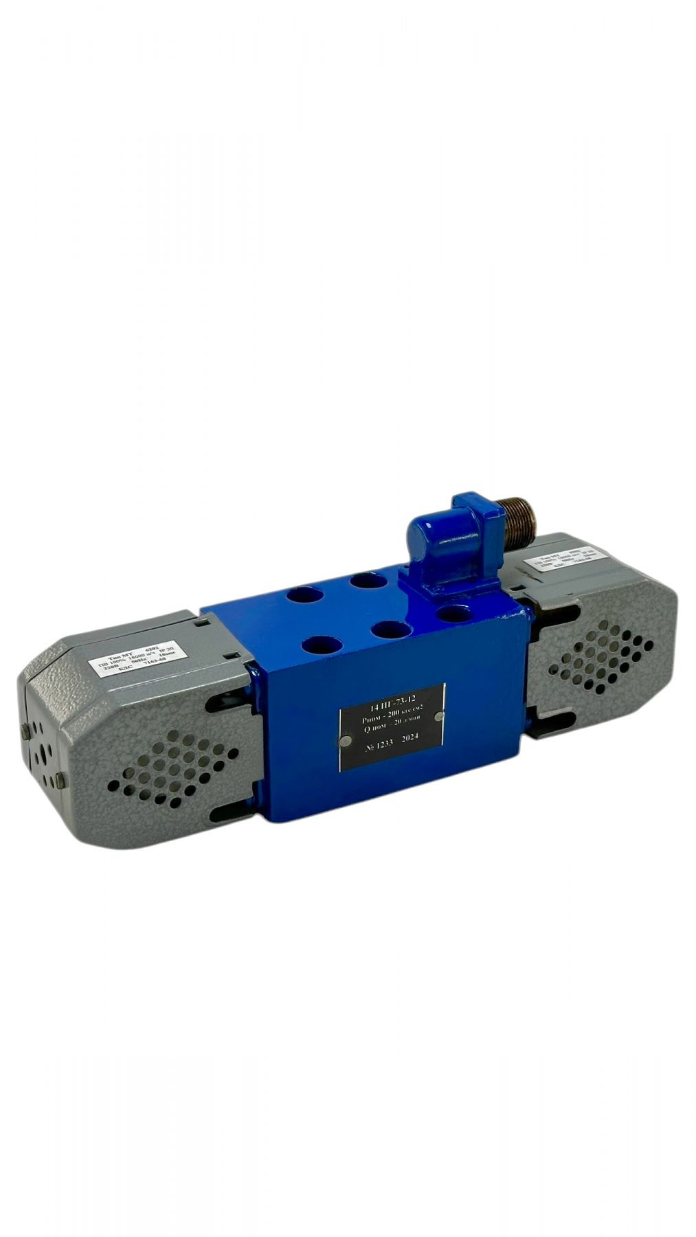 В своих гидравлических распределителях 24ПГ73-12 и 25ПГ73-12 золотник перемещается с помощью электромагнитов и пружин, которые центрируют золотник при отключении: для станочных систем применяются электромагниты на 220В/110В переменного тока, а в мобильной технике — на 12В/24В постоянного тока. Напряжение указывается в маркировке: 24-ПГ73-12 В220 (допускается также 24ПГ73-12.220).
