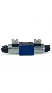 Распределители типа WE представляют собой устройства с электромагнитами, которые контролируют запуск, остановку и направление течения. Их конструкция состоит из корпуса с одним или двумя электромагнитами, управляющего механизма и одного или двух возвратных устройств. При отключении питания, управляющий механизм сохраняет нейтральное состояние благодаря возвратным пружинам, за исключением моделей с импульсным функционированием. Управление золотником осуществляется при помощи мокрого штифта электромагнитов. Для корректного функционирования необходимо, чтобы камера давления электромагнита была заполнена жидкости.