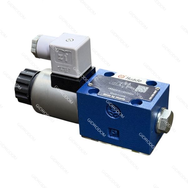 Гидрораспределитель Huade 4WE6D-61B/C G24 — это полный функциональный аналог популярной серии Bosch Rexroth. Это четырехлинейный двухпозиционный (4/2) распределитель с электромагнитным управлением, предназначенный для изменения направления потока масла в гидросистеме.