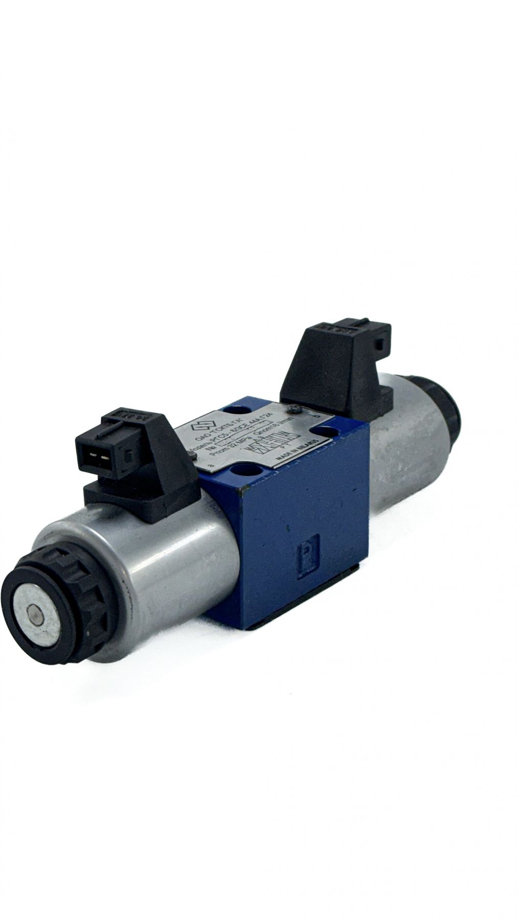 Например, гидрораспределитель В6 с электромагнитным управлением и схемой распределения потока 574 А, у которого золотник установлен без пруж