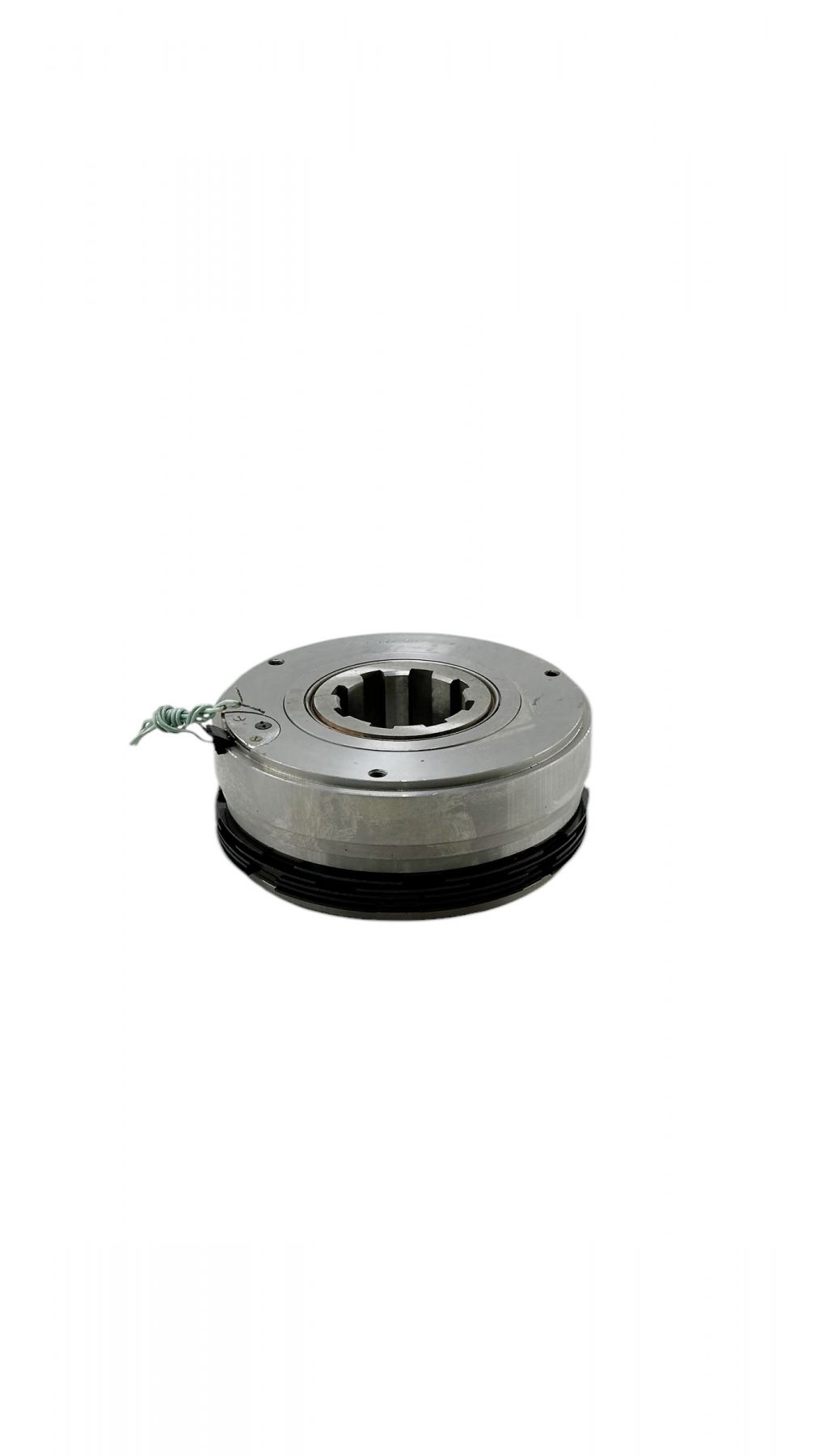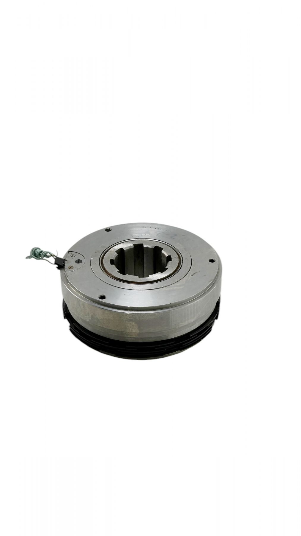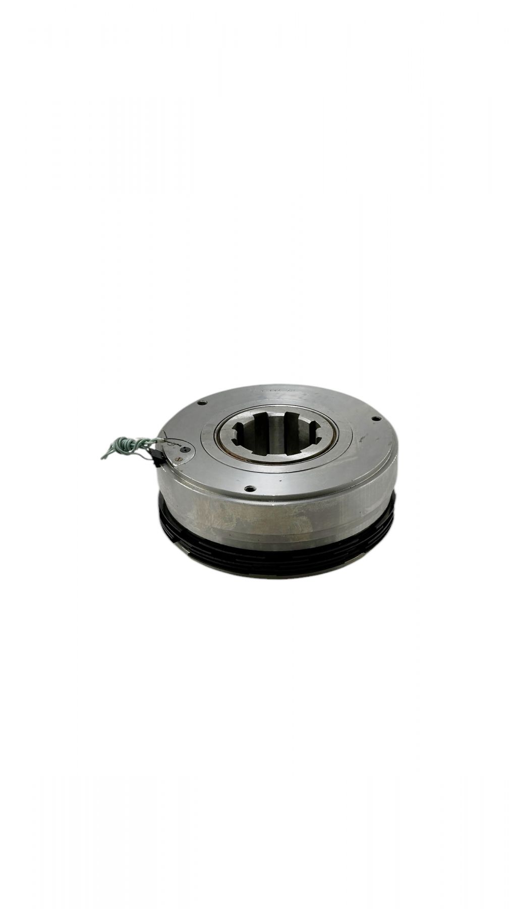 При подаче напряжения на катушку якорь притягивается к корпусу и сжимает пакет фрикционных дисков, вследствие чего момент передается с ведущего вала на ведомый.