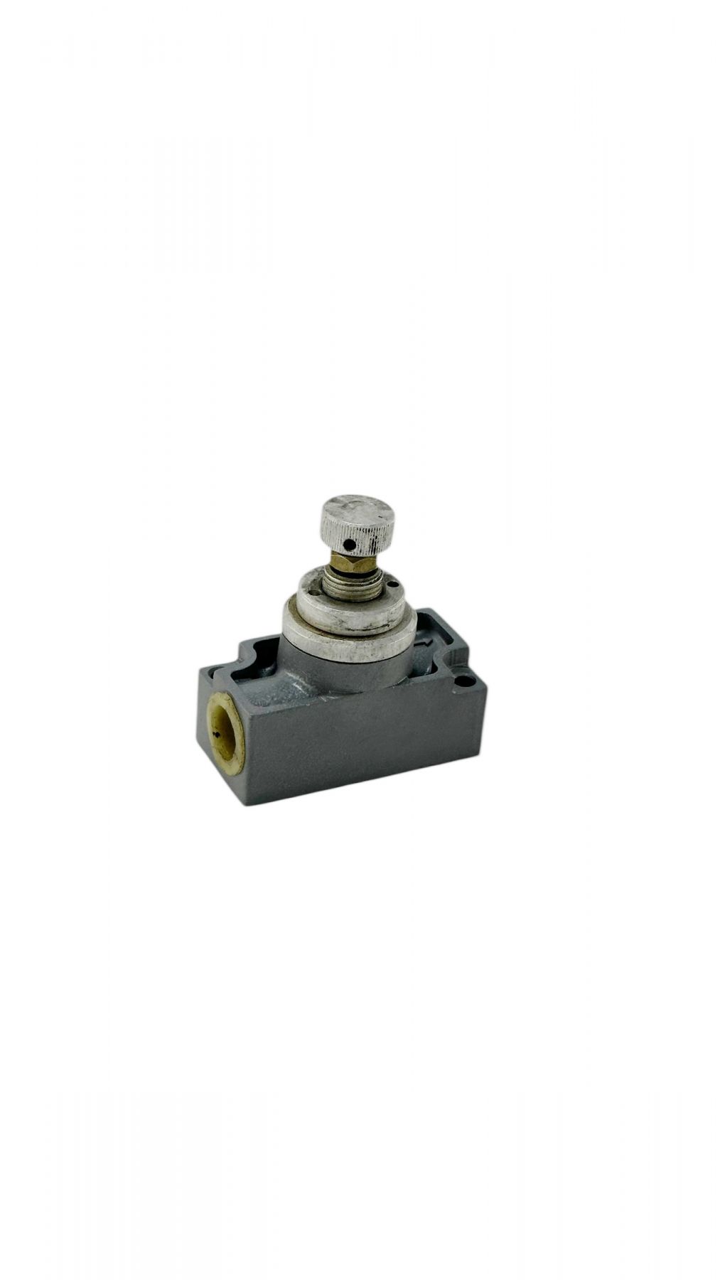 Настройка дросселя П-ДК под требуемый расход сжатого воздуха осуществляется поворотом регулировочной ручки, фиксирующейся гайкой. При изменении направления движения потока сжатого воздуха резиновая пневматическая манжета отделяется от посадочного седла в корпусе, что обеспечивает свободный проход воздуха в обратном направлении.