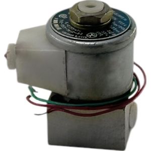 При подаче напряжения на электромагнит якорь, преодолевая силу пружины, смещается к упору, перекрывая выход в атмосферу и открывая канал, соединенный с отверстием подвода подачи воздуха. Воздух поступает в канал потребителя.
