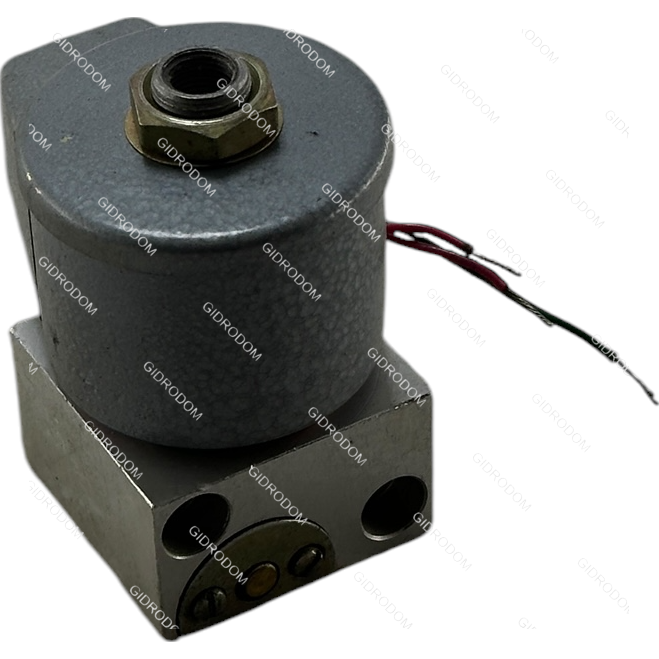 Внутри катушки размещена гильза с завальцованным внутри упором. В гильзе перемещается якорь с уплотнительным узлом, расположенным соосно седлу. При обесточивании электромагнита якорь прижат пружиной к седлу, перекрывая канал подачи воздуха, в то время как выходной канал к потребителю соединён с атмосферой через зазоры на наружной поверхности якоря (на схеме изображение не показано).