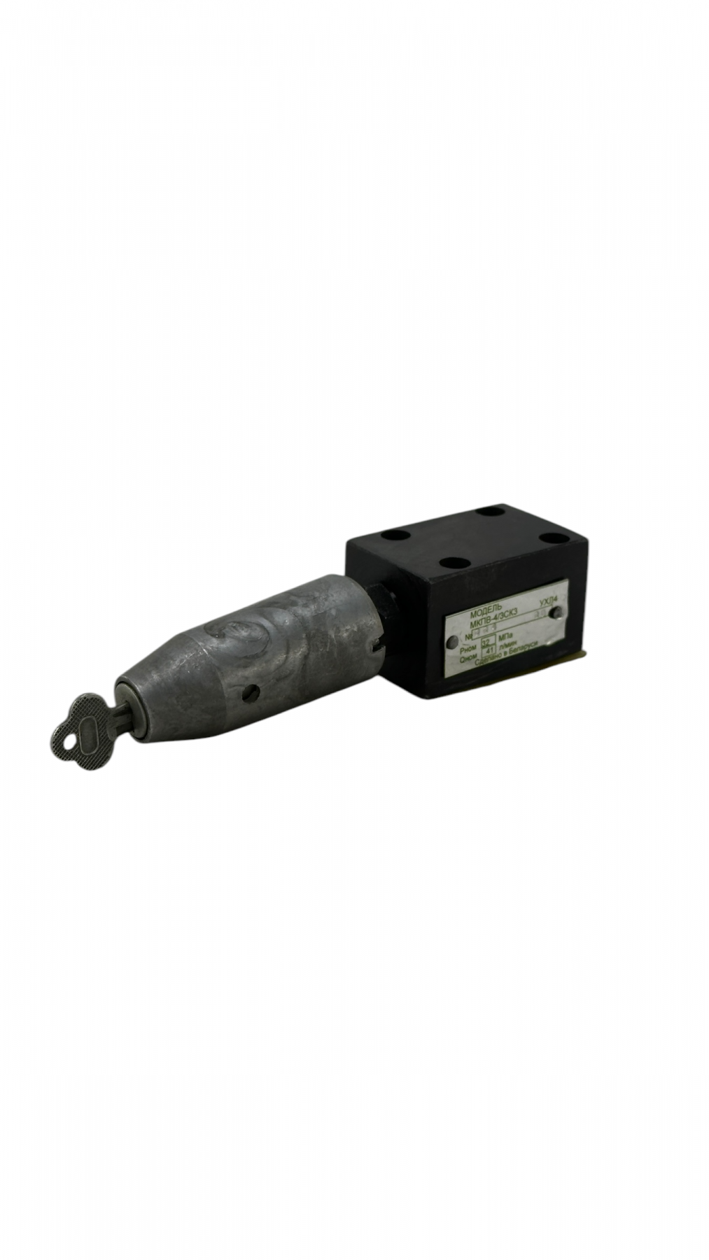 Конструкция клапана включает два внутренних клапана: основной и вспомогательный. В случае превышения давления они направляют рабочую жидкость от нагнетательного канала P к каналу слива T. После нормализации давления его уровень фиксируется вспомогательным клапаном. Установка давления срабатывания осуществляется путем поворота регулировочного винта с головкой под ключ. Для разгрузки системы предусмотрен канал Х, который позволяет произвести разгрузку вручную в соединении с каналом T. Модель МКПВ-4/3СВ3 устанавливается с помощью стыкового соединения (на плиту).
