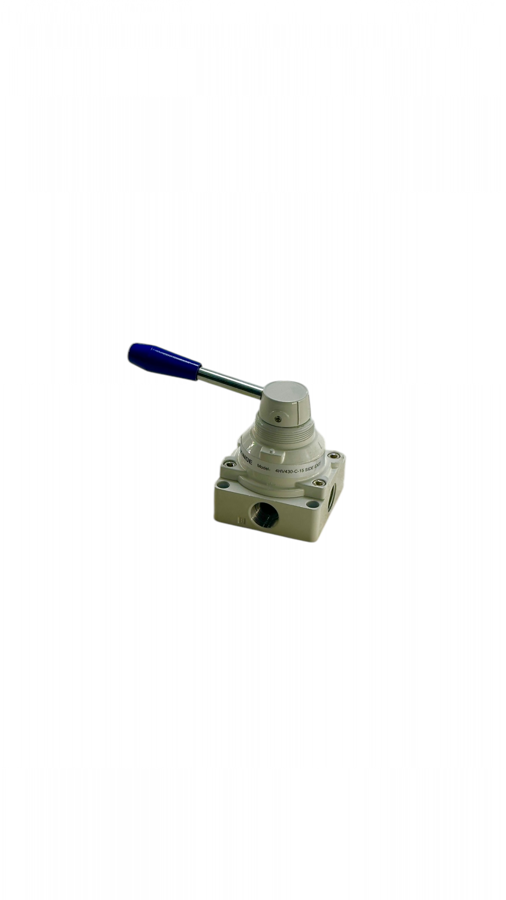 Пневмораспределитель ручной (крановый) 4HV230-08 — трехпозиционный распределитель с четырьмя выбираемыми линиями. Он предназначен для открытия, закрытия и переключения подаваемого воздуха, работает с закрытым центром. Эти пневмораспределители рассчитаны на работу с сжатым и очищенным воздухом, содержащим распыленное масло (за счёт маслораспылителя). Обычно комплектуется фитингами, а очистка воздуха достигается использованием блоков подготовки воздуха.