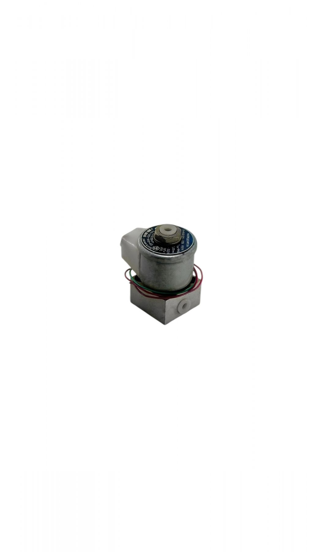 При подаче напряжения на электромагнит якорь, преодолевая силу пружины, смещается к упору, перекрывая выход в атмосферу и открывая канал, соединенный с отверстием подвода подачи воздуха. Воздух поступает в канал потребителя.