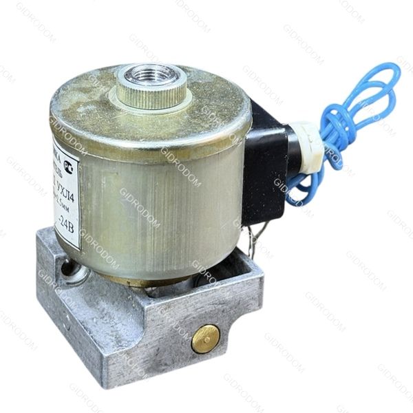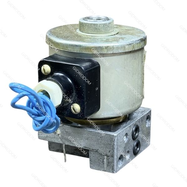 Внутри катушки размещена гильза с завальцованным внутри упором. В гильзе перемещается якорь с уплотнительным узлом, расположенным соосно седлу. При обесточивании электромагнита якорь прижат пружиной к седлу, перекрывая канал подачи воздуха, в то время как выходной канал к потребителю соединён с атмосферой через зазоры на наружной поверхности якоря (на схеме изображение не показано).
