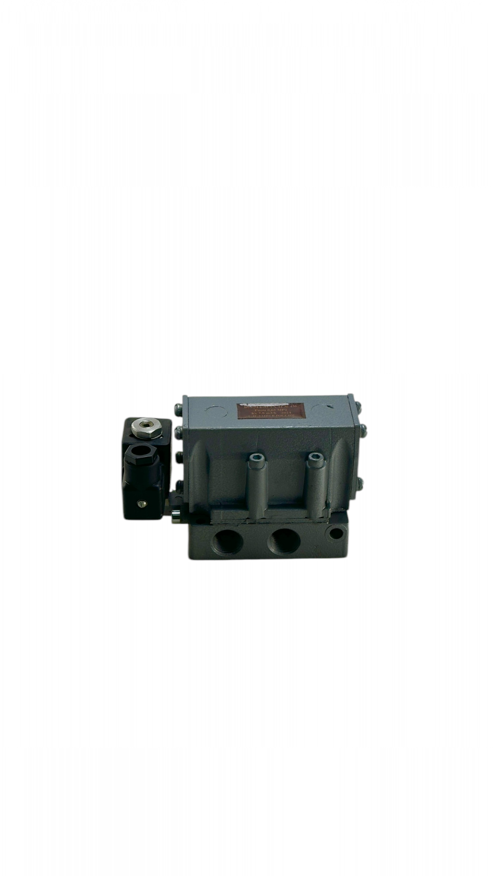 В этой серии распределителей (В64) поток сжатого воздуха направляется через пару плоский золотник — плита. Золотник с канавкой перемещается так, чтобы перекрывать пары отверстий, которые соединены с плоской поверхностью пластины и выходят к резьбовым отверстиям для присоединения пневмолиний.